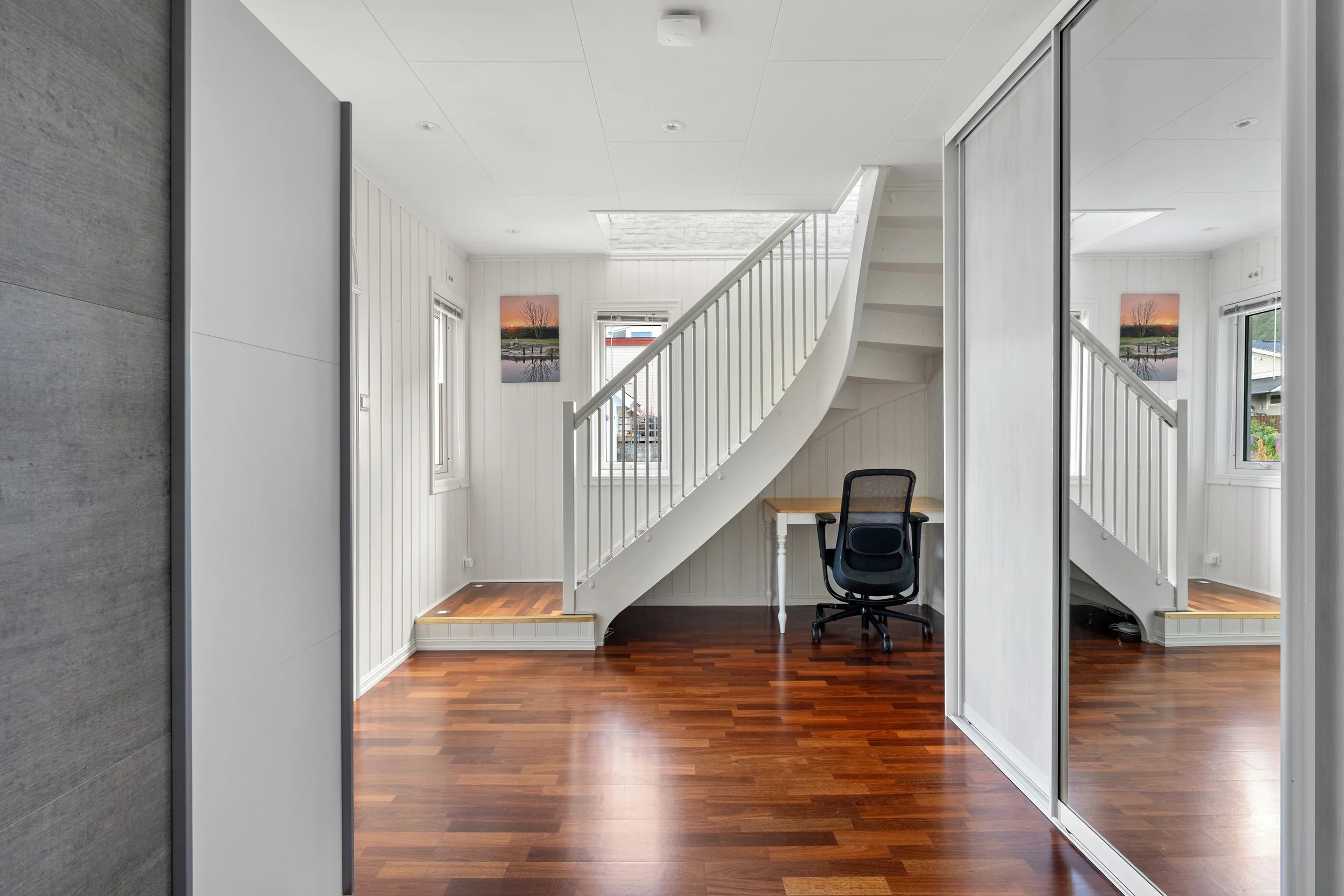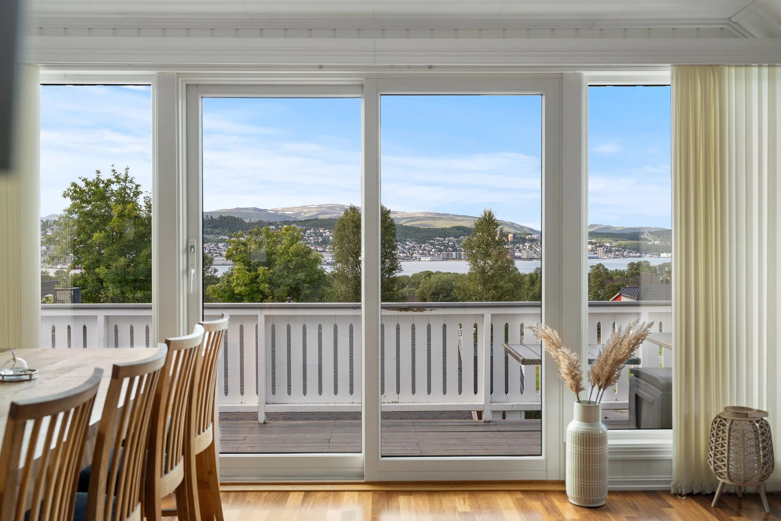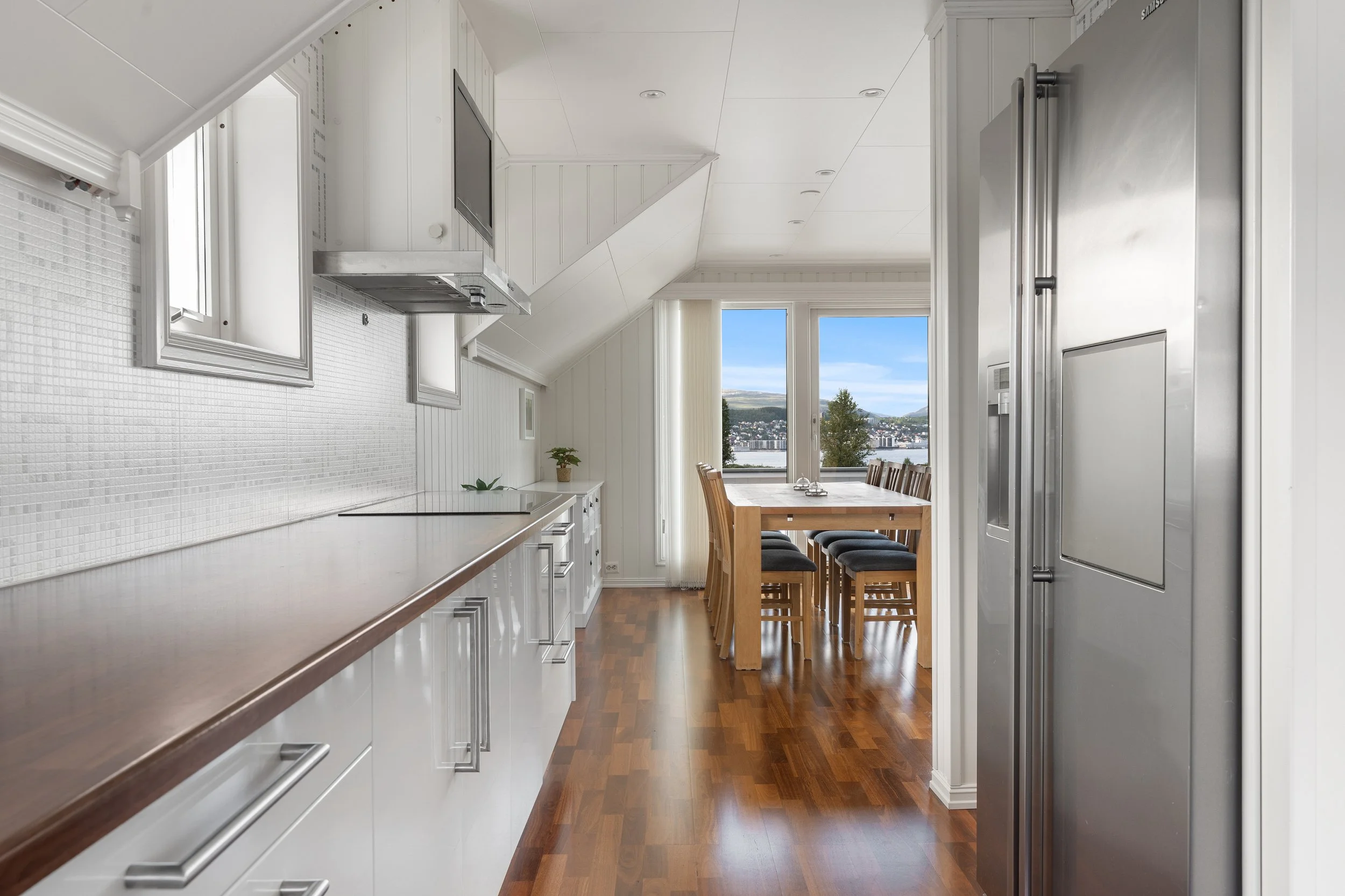 An exclusive smart home in Tromsdalen with four spacious bedrooms and two elegant bathrooms. Located right next to the iconic Arctic Cathedral and only minutes from the famous Fjellheisen. This house offers a great location.
