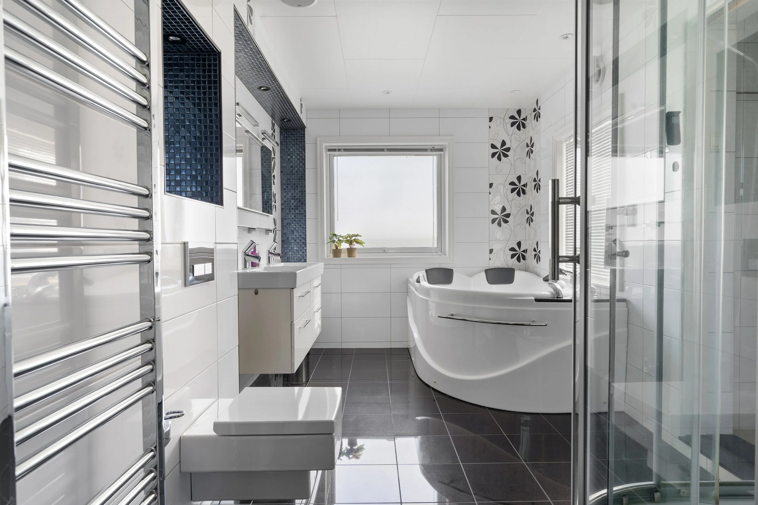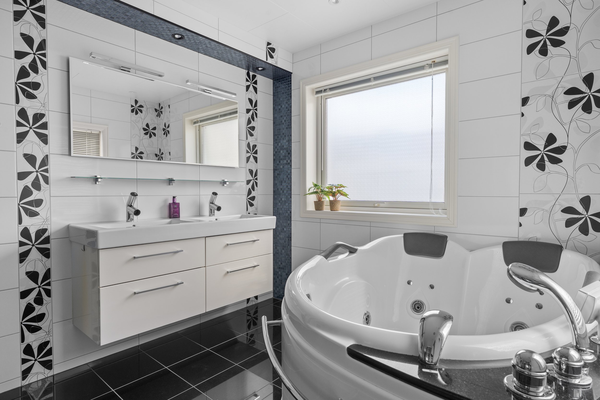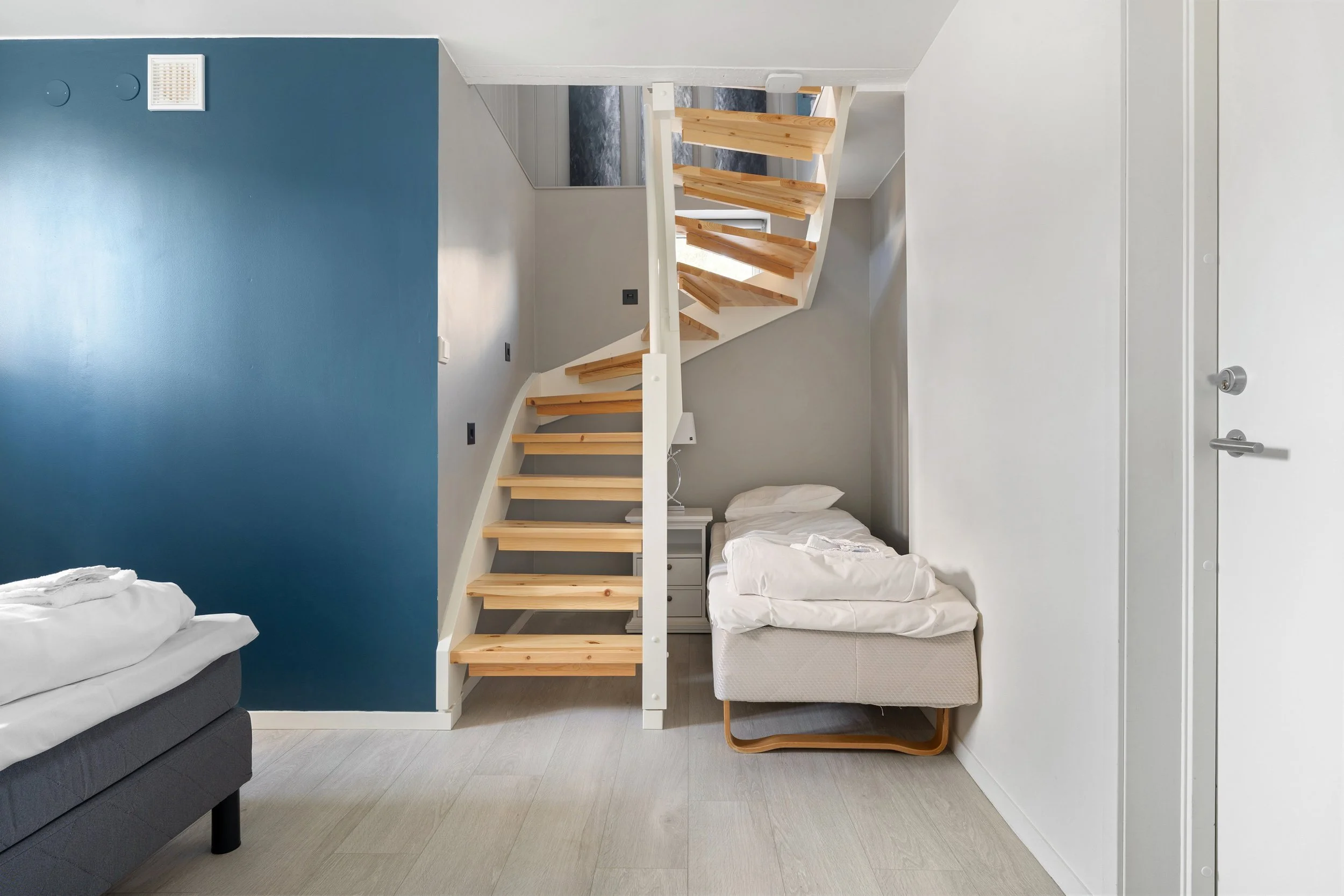 Relax under a magical starry sky in the master bedroom and bathroom, and enjoy a blend of modern design, comfort and arctic atmosphere. Ideal for larger groups and guests who appreciate extra space and comfort
